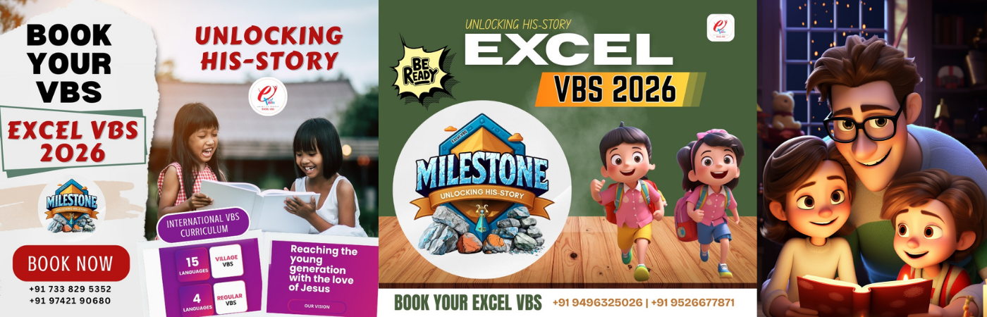Excel VBS considers the Great Commission as applicable to children also and thus committed to reach every child with the love of Christ irrespective of caste, creed and color. The biblical directive, “Train up a child in the way he should go, And even when he is old he will not depart from it”, is to be fulfilled to all the children in the world. For the children are tomorrow’s church, society and citizens. Therefore, at Excel VBS we believe that child evangelism is not an option but a command by our Lord that is to be obeyed at any cost.